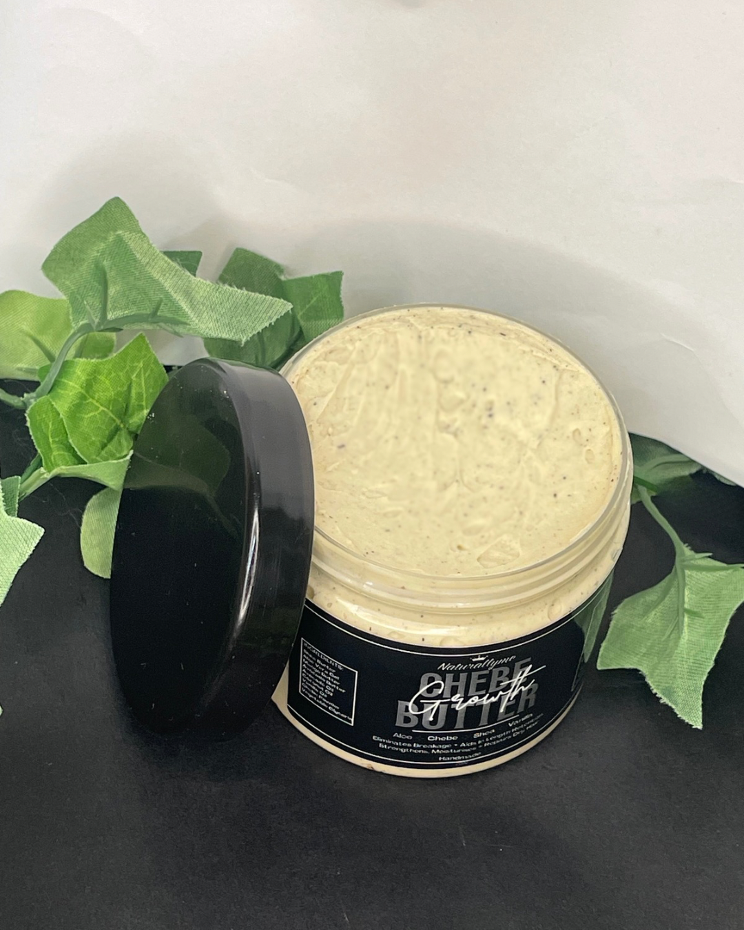 Our Chebe Growth Butter Softens, Strengthens + Conditions the Hair Strands.